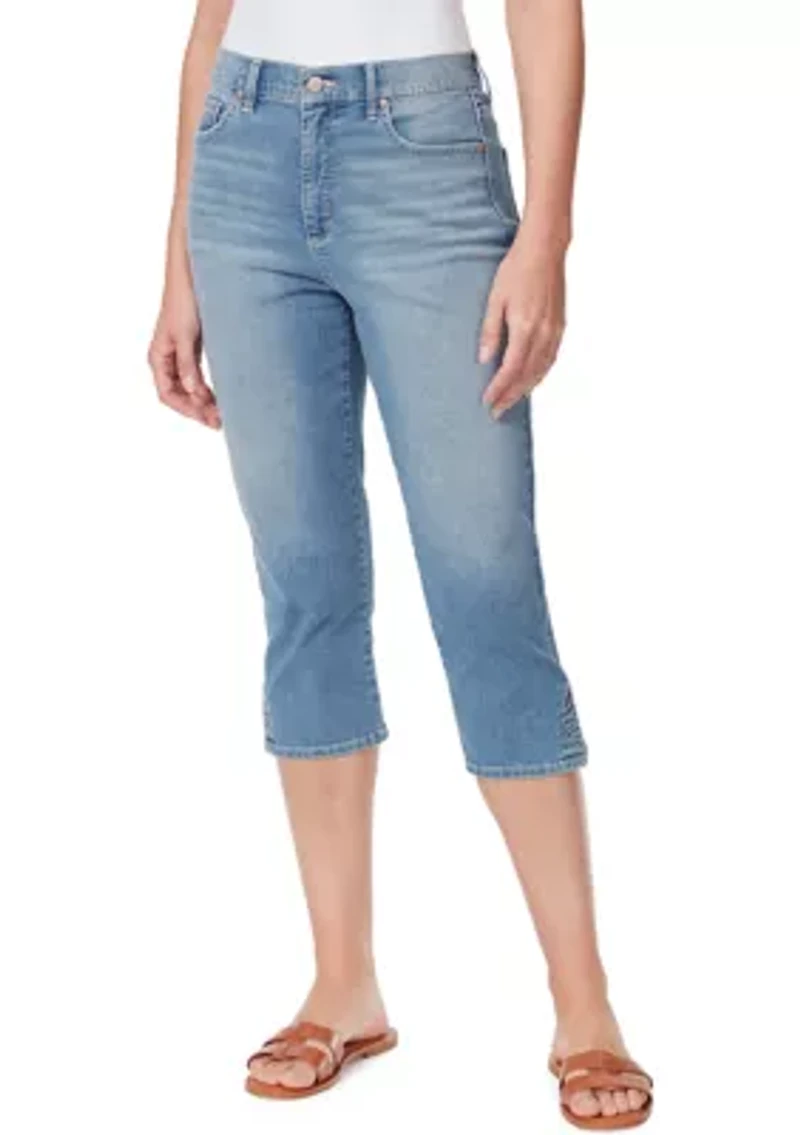 These chic capris from Gloria Vanderbilt will add a nice flair to your favorite casual looks. Button closure, zip closure Belt loops Classic 5-pocket styling Unlined Cropped fit Imported Product Specifications 19" Inseam Material & Care Cotton, polyester, spandex Machine washable