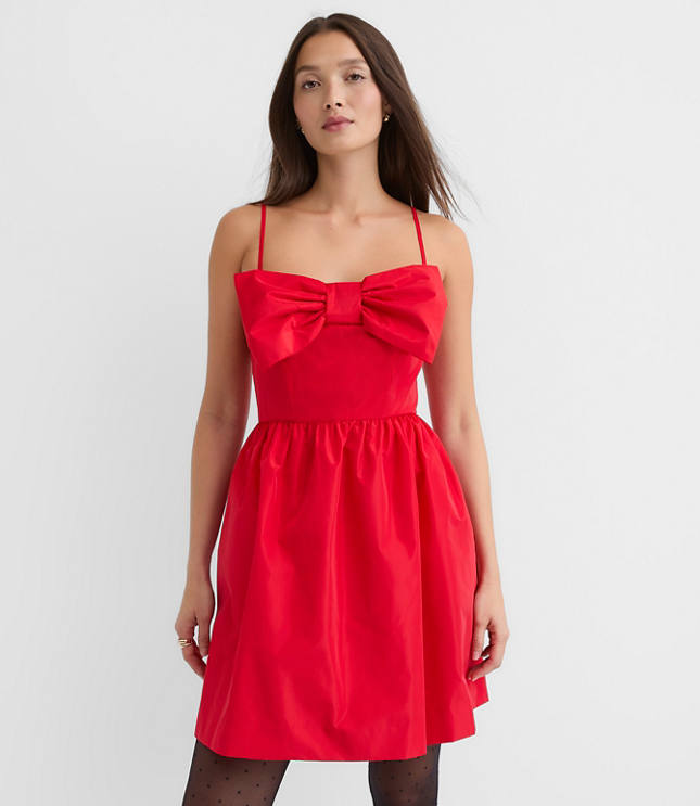 Bow - topped, pocketed and finished with flattering corset - inspired seaming, this satiny taffeta dress is a celebration in itself. Adjustable spaghetti straps. Onseam pockets Back zip Lined, Imported:, Fit: Waisted - fits and flatters waist, Length: 24 3/4"from center top back edge to hem, measured from a size 8 / M, Fabrication: Shell 100% Polyester, Lining 100% Polyester, Garment Care: Machine Washable Loft Petite Bow Strappy Mini Pocket Dress Size 2 Cherry Popsicle Women's by Loft Size Petite - 2 Cherry Popsicle Women's Fit, & Flare Dresses Social Shell: 100% Polyester Lining 100% Polyester Machine Washable