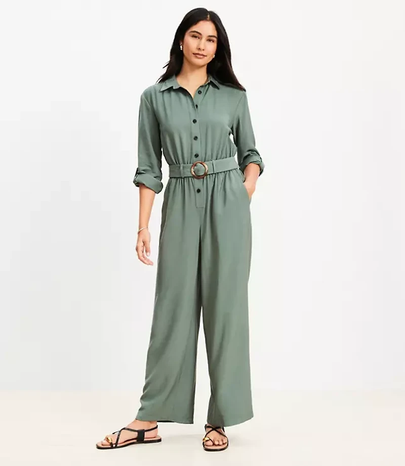 Petite Button Tab Belted Jumpsuit