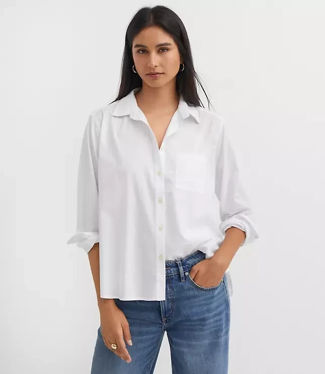 Petite Cotton Blend Everyday Relaxed Pocket Shirt