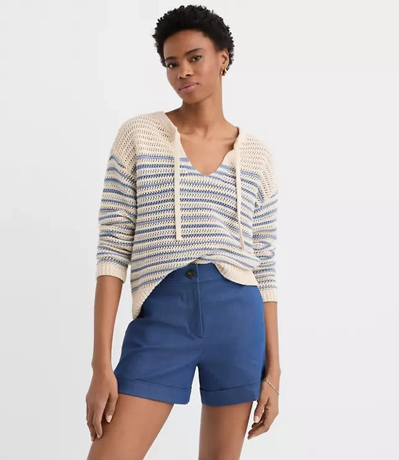 Pants Details: Front zip with button closure. Belt loops Slash pockets Back welt pockets., Leg Shape: Cuffed Short - fitted through the hip, with a cuffed leg, Rise: Sits at high waist, 11 1/2"rise, Imported:, Fit: Easy and versatile for everyday wear, Length: Short, 3 1/2"inseam, Fabrication: 33% Polyester 32 Cotton Lyocell 3 Spandex, Garment Care: Machine Washable Loft Petite Cuffed Shorts in Refined Denim Size 00 Sky Chambray Women's by Loft Size Petite - 00 Sky Chambray Women's Regular, Shorts Pants 33% Polyester 32% Cotton 32% Lyocell 3% Spandex Machine Washable