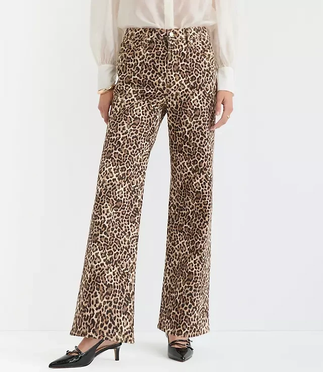 Petite High Rise Wide Leg Jeans Leopard Print