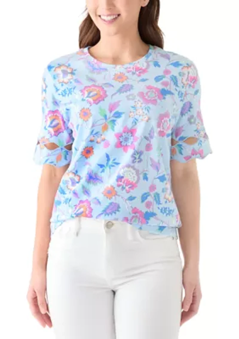 Petite Elbow Sleeve Print T-Shirt with Scallop Trim in Chattanooga, TN