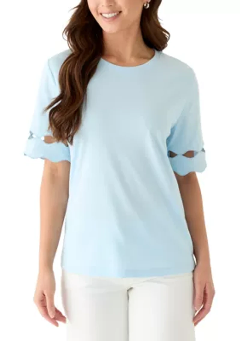 Petite Elbow Sleeve T-Shirt with Scallop Trim