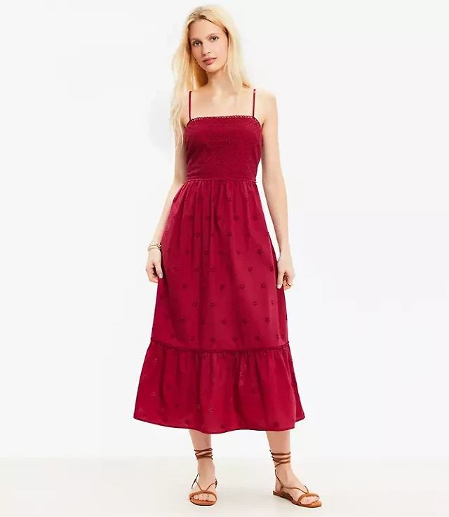 Daisy Eyelet Sweetheart Strappy Midi Dress