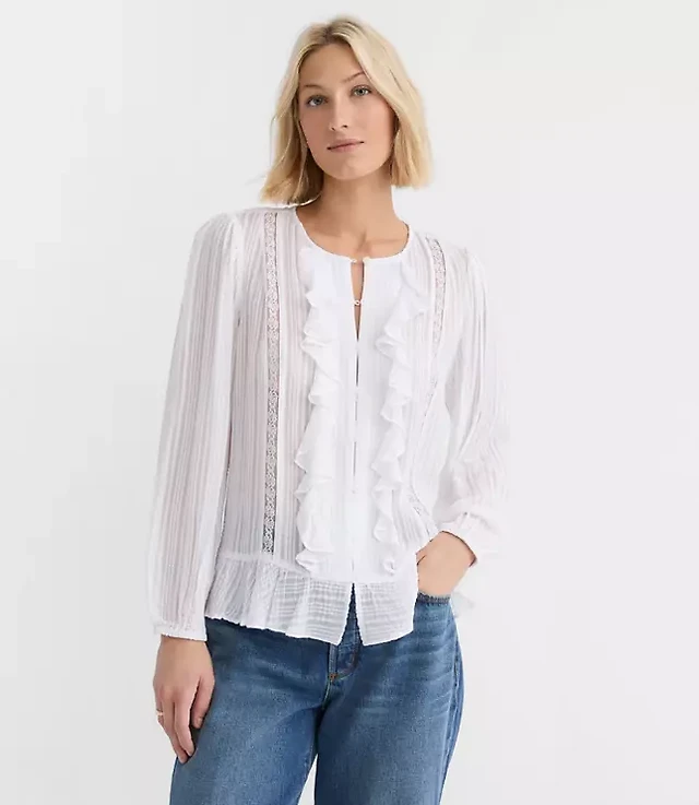 Petite Lace Ruffle Blouse