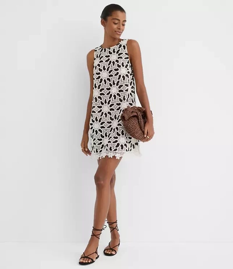 Petite LOFT Beach Floral Crochet Mini Dress