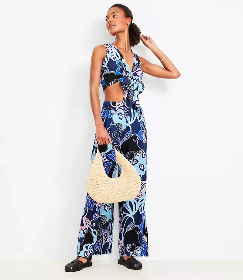 Petite LOFT Beach Floral Linen Blend Wide Leg Pants