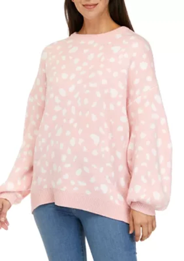 Plus Long Sleeve Crew Neck Zebra Print Jacquard Sweater