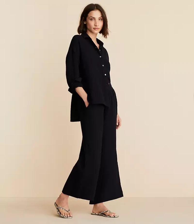 Truly essential, our designers used triple cloth fabric with a textured handfeel to create this easygoing style. Elasticized waist Slash pockets Back patch pockets., Imported:, Fit: Relaxed an easy shape that's just shy of loose, Length: 24"inseam, Fabrication: 100% Cotton, Garment Care: Machine Washable Lou & Grey Petite Triple Cloth Wide Leg Crop Pants Size XS Black Women's by Lou & Grey Size Petite - XS Black Women's Luvstretch, Shorts Pants 100% Cotton Machine Washable