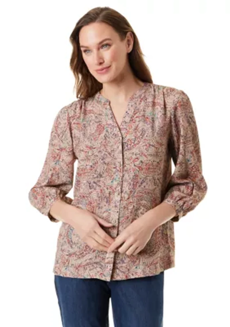 Perfectly paired with dark-wash denim, the Marisa top from Gloria Vanderbilt enhances your casual style. Button closure Split neck 3/4 sleeves with cuffs Unlined Imported Product Specifications 25" L Material & Care Viscose Machine washable