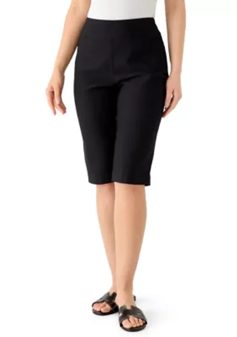 These Kim Rogers® pants with a mid-rise fit and slim style provide a chic and confident look all day long. Elastic waistband Unlined Classic fit Imported Belk Exclusive Product Specifications 14" inseam Material & Care 77% rayon, 20% nylon, 3% spandex Machine washable