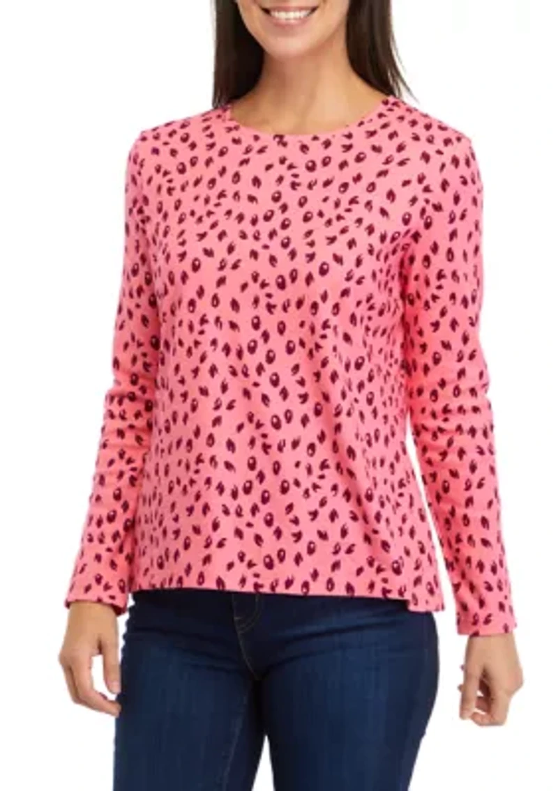 A relaxing style is updated with an eye-catching print, making this t-shirt from Kim Rogers® a charming choice for everyday wear. Pullover Crew neck Long set-in sleeves Imported Belk Exclusive Product Specifications 24.5" L Material & Care Cotton Machine washable