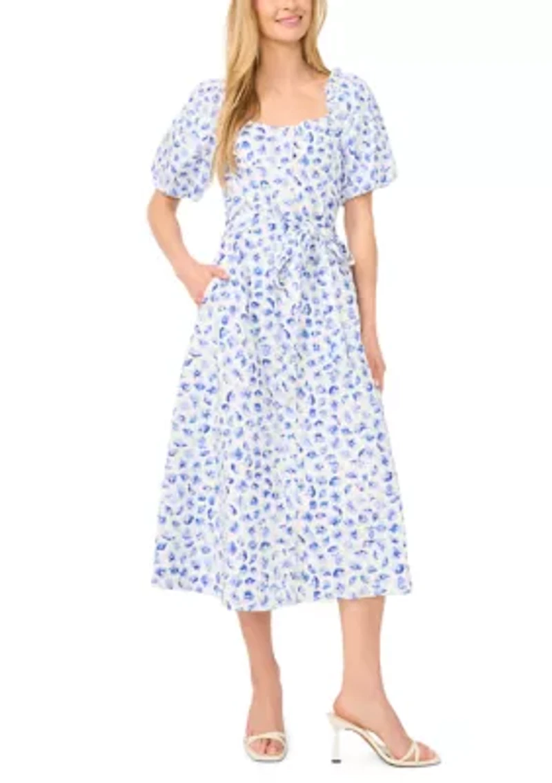 This lovely CeCe dress, with its charming A-line style and beautiful print, offers a chic look that's perfect for all-day wear. Button closure Sweetheart neck Short puff sleeves Lined Imported Product Specifications 43" L Material & Care 100% cotton Machine washable
