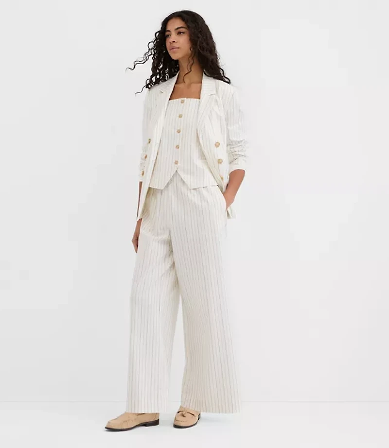 Petite Pull On Wide Leg Pants Pinstripe Cotton Linen