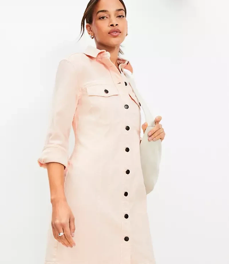 Styled with flattering seamed detail - and cool yet classic, hard - wearing yet soft and comfortable - no wardrobe essential is more of a style hero than this denim dress. Point collar Long sleeves with button cuffs. Button flap chest pockets. Button front Raised - seam paneling. Front and back yoke., Imported:, Fit: Shift - fits straight and relaxed, Length: 33 1/2"from center back neck to hem, measured from a size 8 / M, Fabrication: 98% Cotton 2 Elastane, Garment Care: Machine Washable Loft Petite Seamed Denim Mini Pocket Dress Size 8 Pink Dune Women's by Loft Size Petite - 8 Pink Dune Women's Shift, Dresses Everyday 98% Cotton 2% Elastane Machine Washable