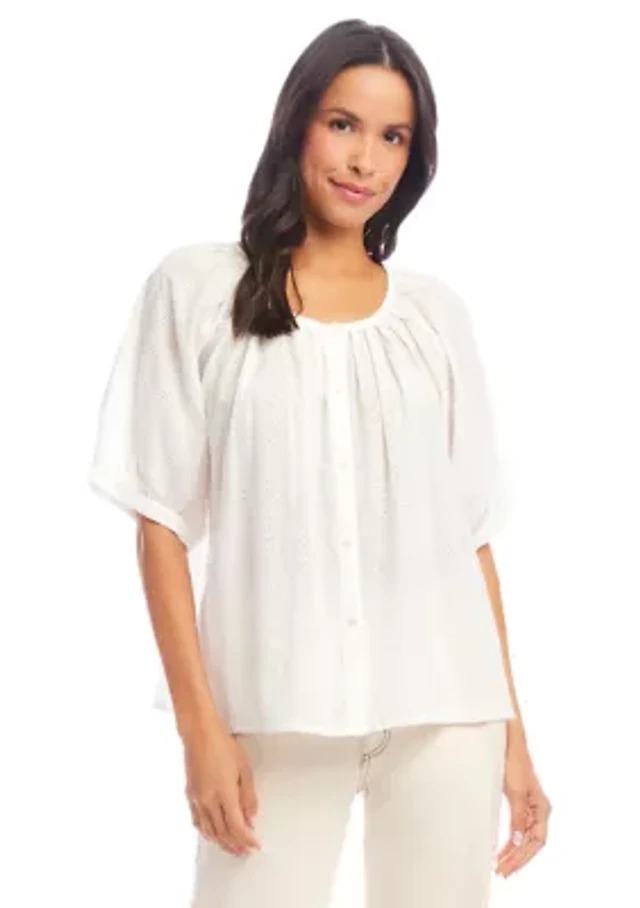 Women's Short Sleeve Pintuck Printed Peasant Top