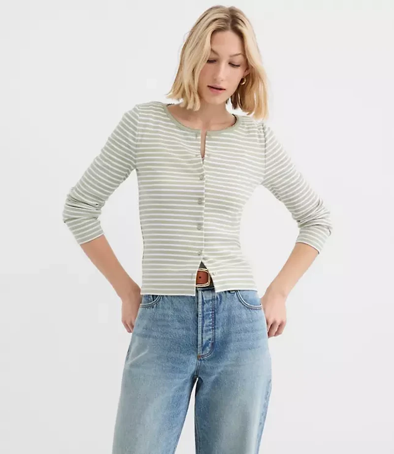 Scalloped at the neck - and super soft touchably textured - we love this sweet take on a forever essential. Crew neck Long sleeves Button front, Hit: Hits at waist, Imported:, Length: 20 3/4"long, Fabrication: 63% Polyester 34 Cotton 3 Spandex, Exclusive Of Decoration, Garment Care: Machine Washable Loft Petite Striped Scalloped Ribbed Cardigan Size 2XS Brushed Sage Women's by Loft Size Petite - 2XS Brushed Sage Women's Square, Neck Long Sleeve Knits Tops Casual Chic 63% Polyester 34% Cotton 3% Spandex Exclusive Of Decoration Machine Washable