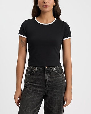 Body Contour Stretch Cotton Crew Neck Tipped Baby Tee