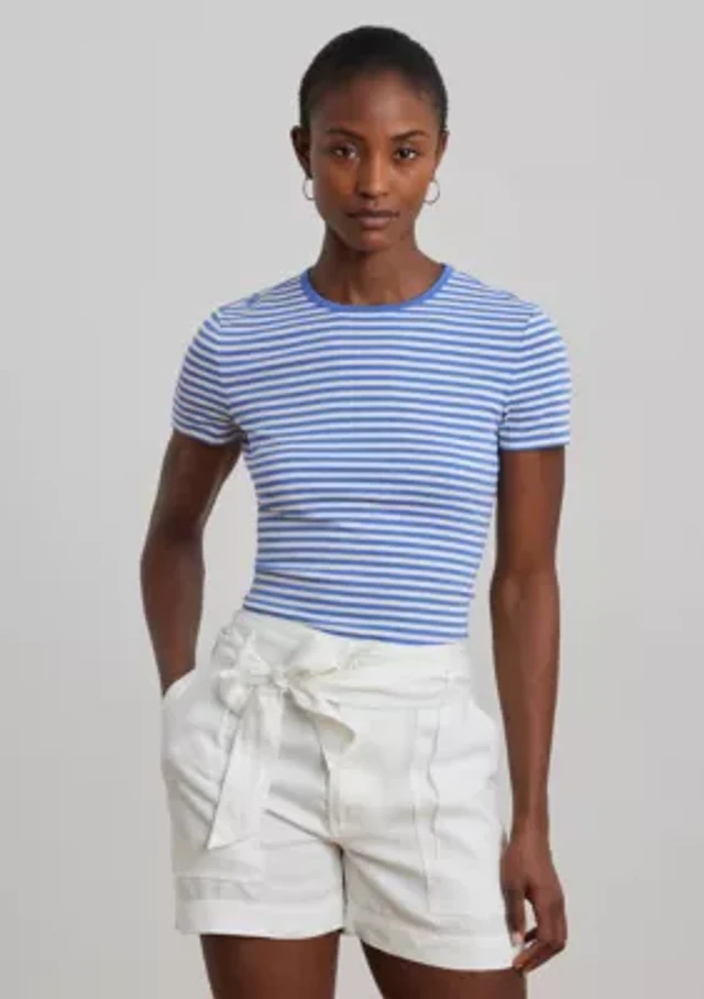 Petite Striped Stretch Cotton Crew Neck T-Shirt
