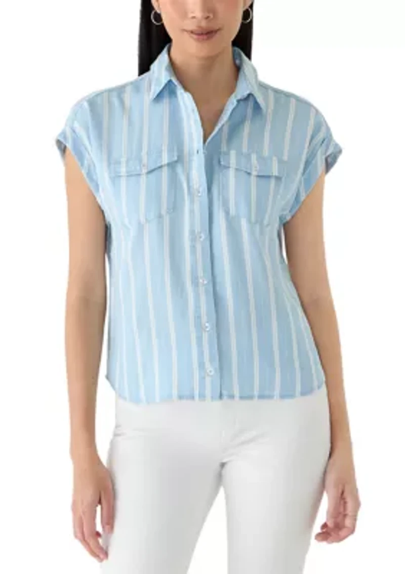 Featuring a classic collar and cap sleeves, this Fever button-down shirt includes two convenient pockets. Its versatile design makes it ideal for various occasions, providing a polished look without sacrificing comfort. Button closure Collared neck Short cap sleeves Unlined Imported Product Specifications 23.5" L Material & Care Lyocell Hand wash