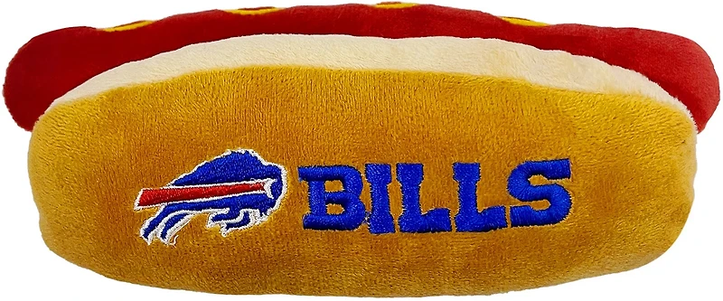 Pets can join in on gameday with the Pets First Buffalo Bills Hot Dog Toy. This plush fabric chew toy comes with an internal squeaker for more engaging play, as well as a colorful graphic to celebrate your pet's favorite team.