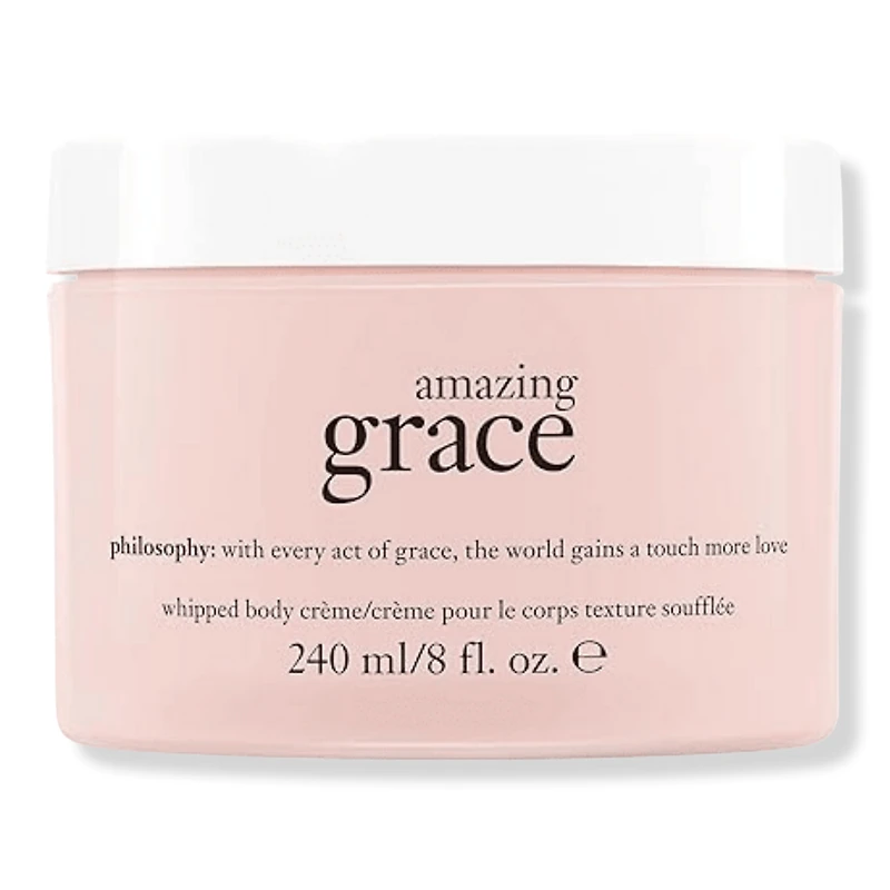 AMAZING GRACE WHIPPED BODY CREME 8OZ. Benefits: This luxuriously lightweight, whipped body moisturizer melts onto skin to improve skin's softness. Key Ingredients: The formula moisturizes, soothes and protects skin with shea butter, aloe, olive fruit extract and antioxidants. :