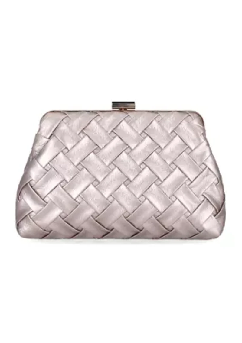 A woven exterior elevates the look of this chic clutch from Jessica McClintock. Crossbody strap with 23" drop Interior: Credit Card pocket back wall Imported Product Specifications 8.75" x 5.25" x 2" Material & Care Polyester Clean with a soft cloth