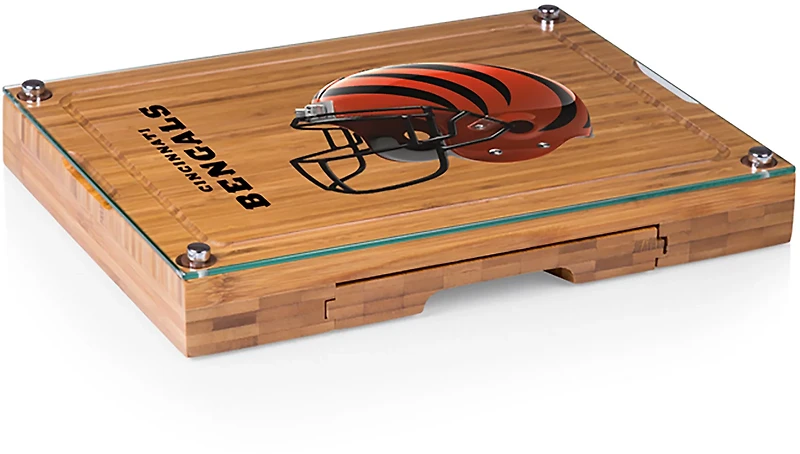Lay out the snack spread, it's game time with the Picnic Time Cincinnati Bengals Concerto Glass Top Cheese Cutting Board and Tools Set. The bamboo wood construction affords durability, while the 128 square inch surface provides plenty of room for cutting cheese, veggies and meat. Built-in tool storage lets you safely store tools when not in use, and the team graphics show off your Cardinals pride.