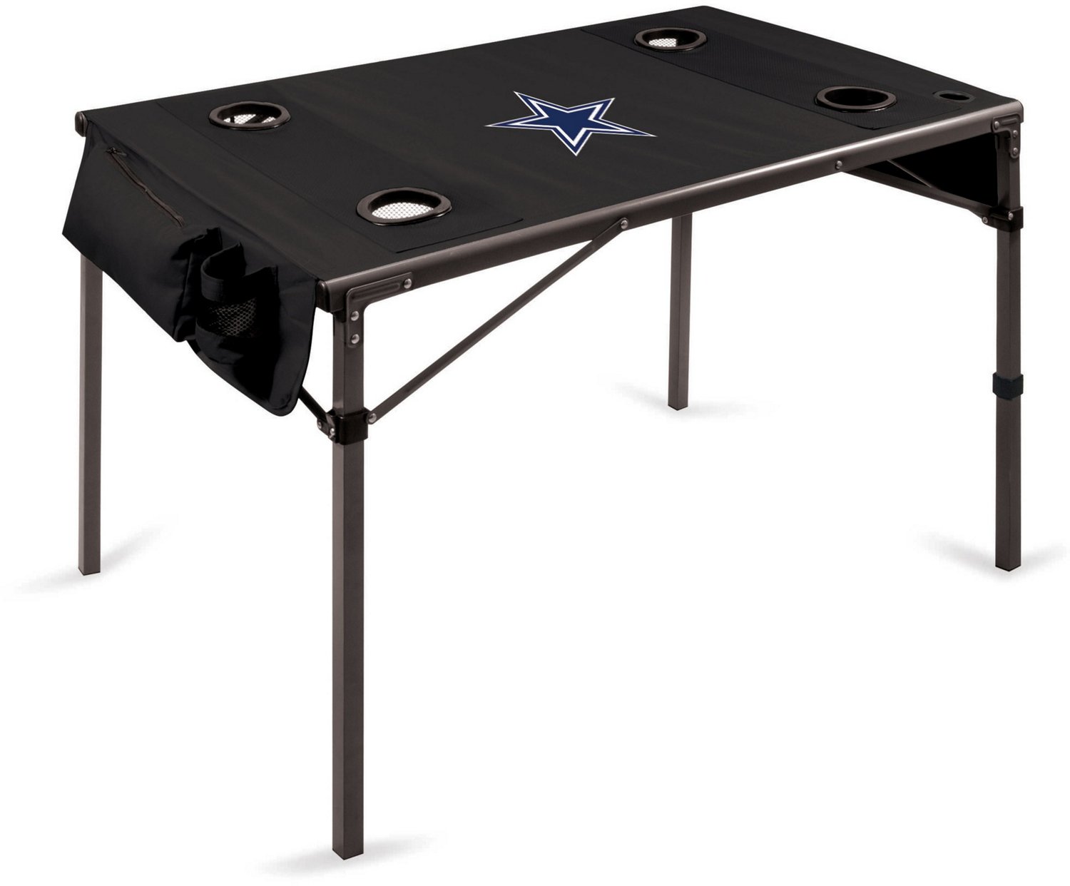 Bring along the Picnic Time Dallas Cowboys Portable Folding Travel Table to your next tailgate. The 70% polyester and 30% steel construction offers a sturdy and long-lasting build, and the team graphic makes it clear you're a fan. The foldable design ensures easy transportation, and the 1 beverage pocket and 1 zippered pouch provides room to conceal items.