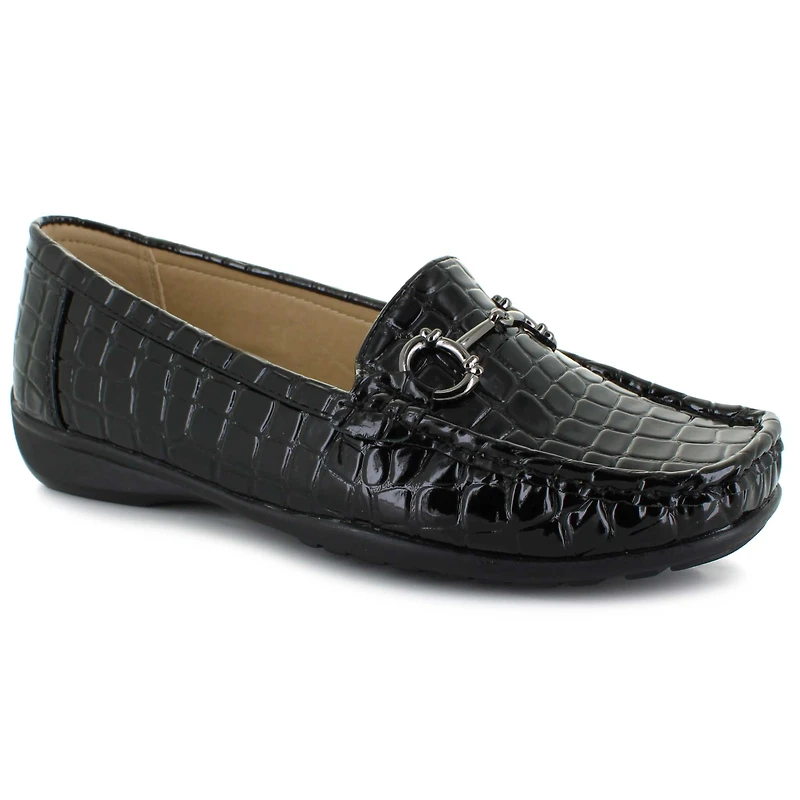 The Pierre Dumas Hazel is a chic and versatile casual shoe designed for effortless style and comfort. Featuring a sleek synthetic croco upper with eye-catching front metallic hardware, this slip-on shoe adds a sophisticated touch to any outfit. The cushioned comfort insole provides excellent support, ensuring all-day wearability. A durable traction outsole enhances stability, making it perfect for both indoor and outdoor wear. Whether you're running errands or dressing up a casual look, the Pierre Dumas Hazel combines fashion and function for the perfect everyday shoe.