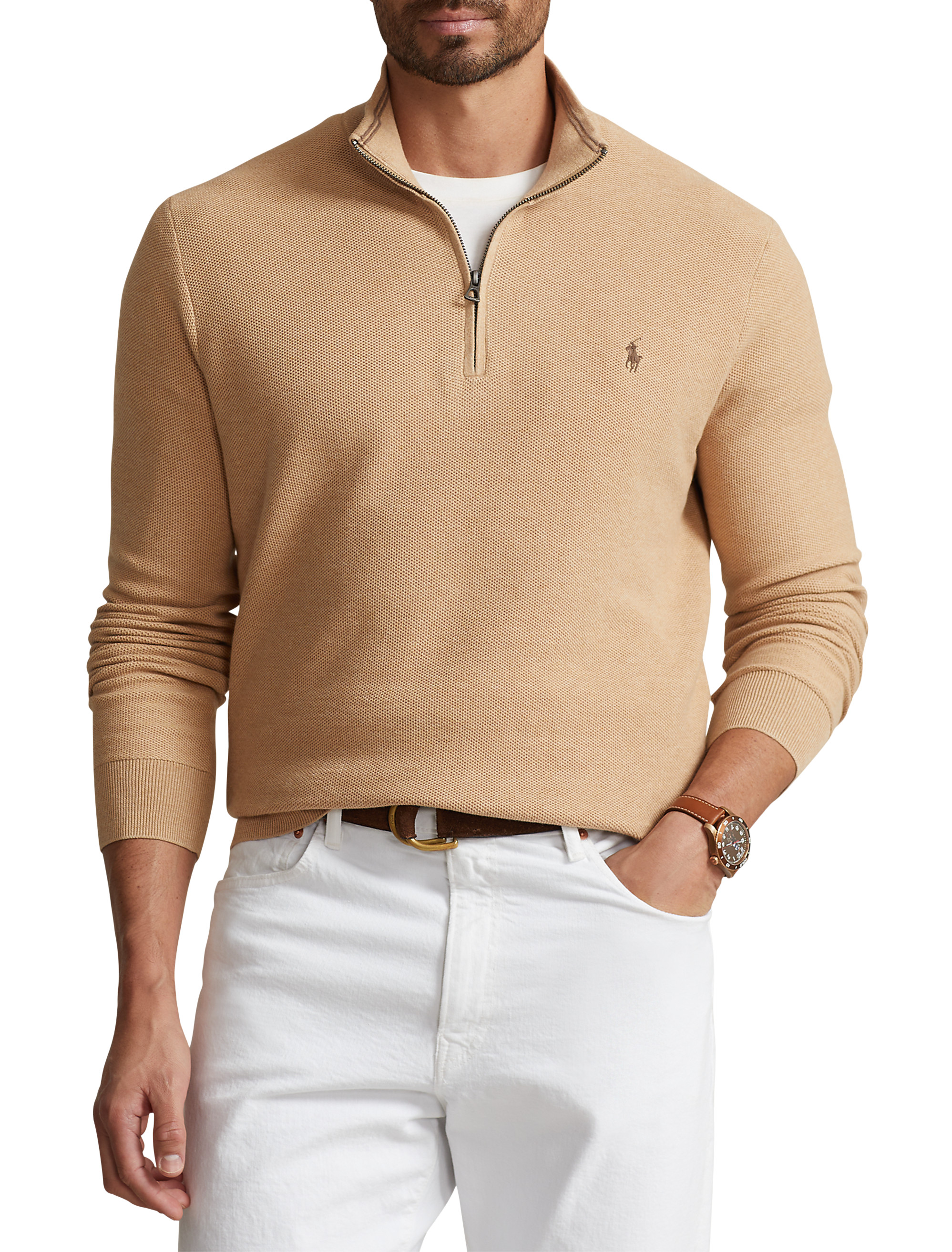 - Signature embroidered pony at the left chest