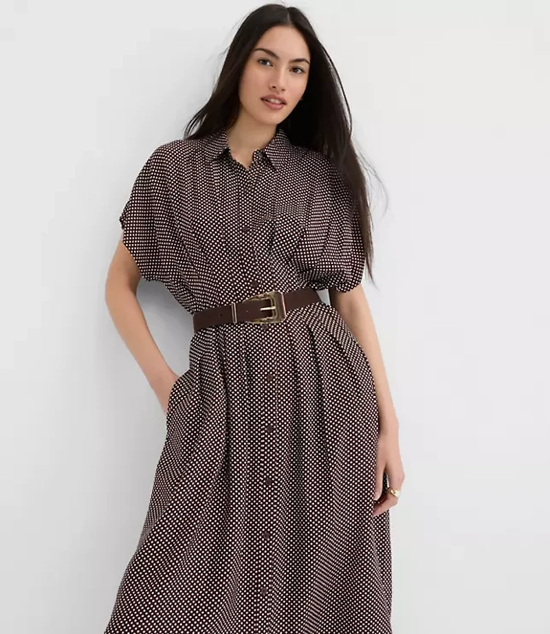 Pindot Pleated Midi Pocket Shirtdress