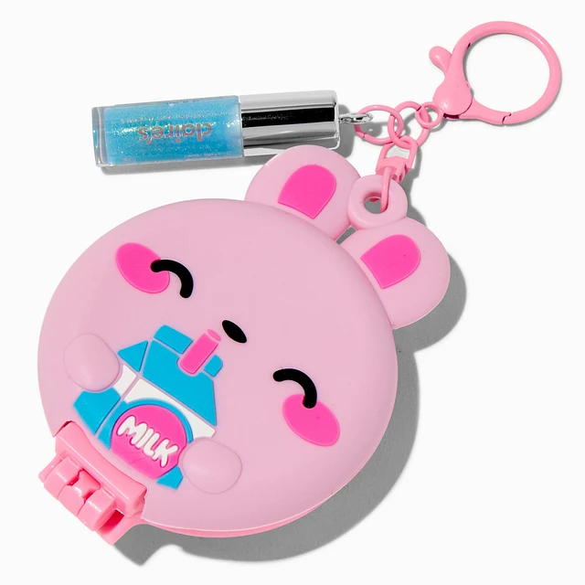 Pink Bunny Milk Pop-Up Hair Brush & Lip Gloss Keychain