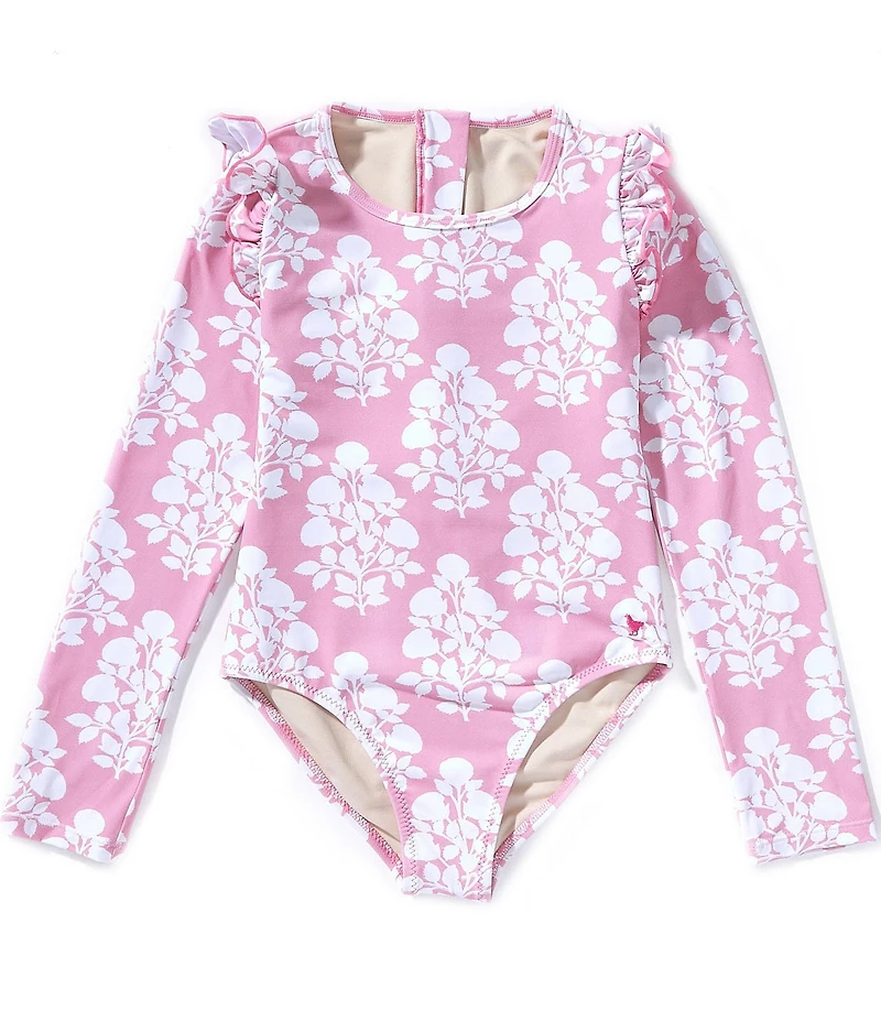 Pink Chicken Big Girls Long Sleeve Ruffle Shoulder Floral One Piece Rachel Rashguard Swimsuit