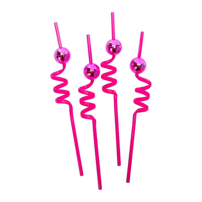 Pink Disco Plastic Straws 4-Count