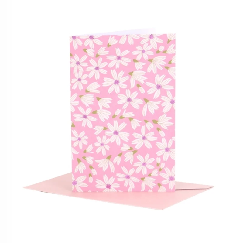 Whether it's a special occasion or just an ordinary day, write a note from the heart with this Pink Floral Greeting Card. The blooming floral design invites a happy, heartfelt message. Card measures 8.25L x 5.4W in. Crafted of paper Floral design Hues of pink, white, and green Blank inside Care: Dust with a soft, dry cloth. Contact your local Kirkland's store for availability. Quantities and selection may vary by location.