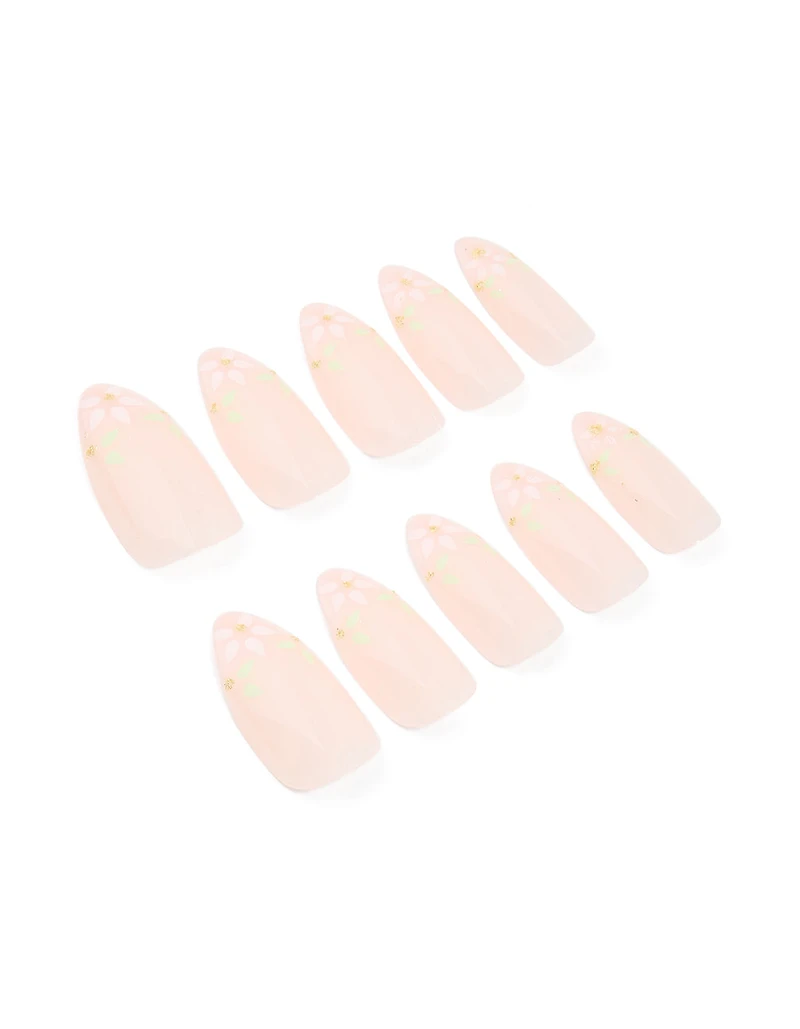 Pink French Tip Floral Art Press On Nails 24-Set