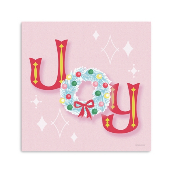 Deck the halls with merry artwork! With its fun style and vivid colors, this Pink Joy Wreath Canvas Print will put a modern flair on your Christmas decor! Art measures 20L x 1.25W x 20H in. Distinctively printed on stretched canvas Wrapped edges complete the look Features the word "Joy" with a wreath accent Hues of pink, red, yellow, white, blue, and green Weight: 3.61 lbs. Hangs from back-mounted hardware Care: Dust with a soft, dry cloth. This item is available at Kirklands.com only, not available in stores. Please note: this item cannot be shipped to APO/FPO addresses.