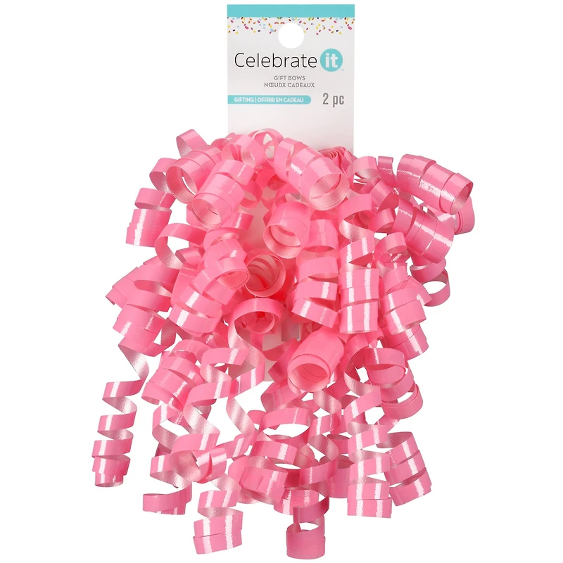 Add fun and style to your party decorations with these pink lacquer twisty bows by Celebrate It. Flaunt these twisty bows on your favorite wall for a pop of visual charm. Details:Pink lacquer color0.25" x 30"2 twisty bows 10 strands eachPP and PET