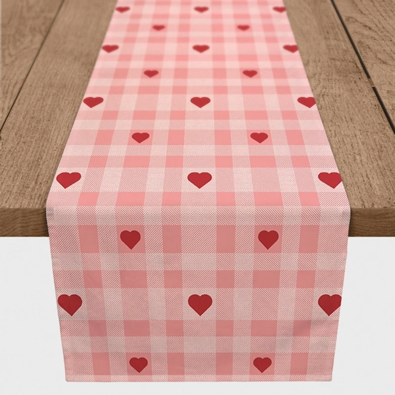 Pink Plaid Hearts Table Runner, 90 in.