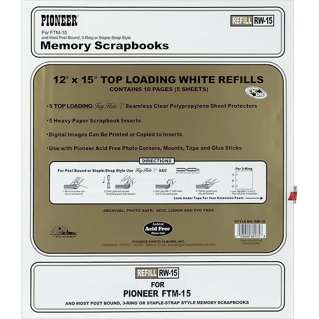 Pioneer® 12" x 15" Universal Top-Loading Page Protectors with White Inserts