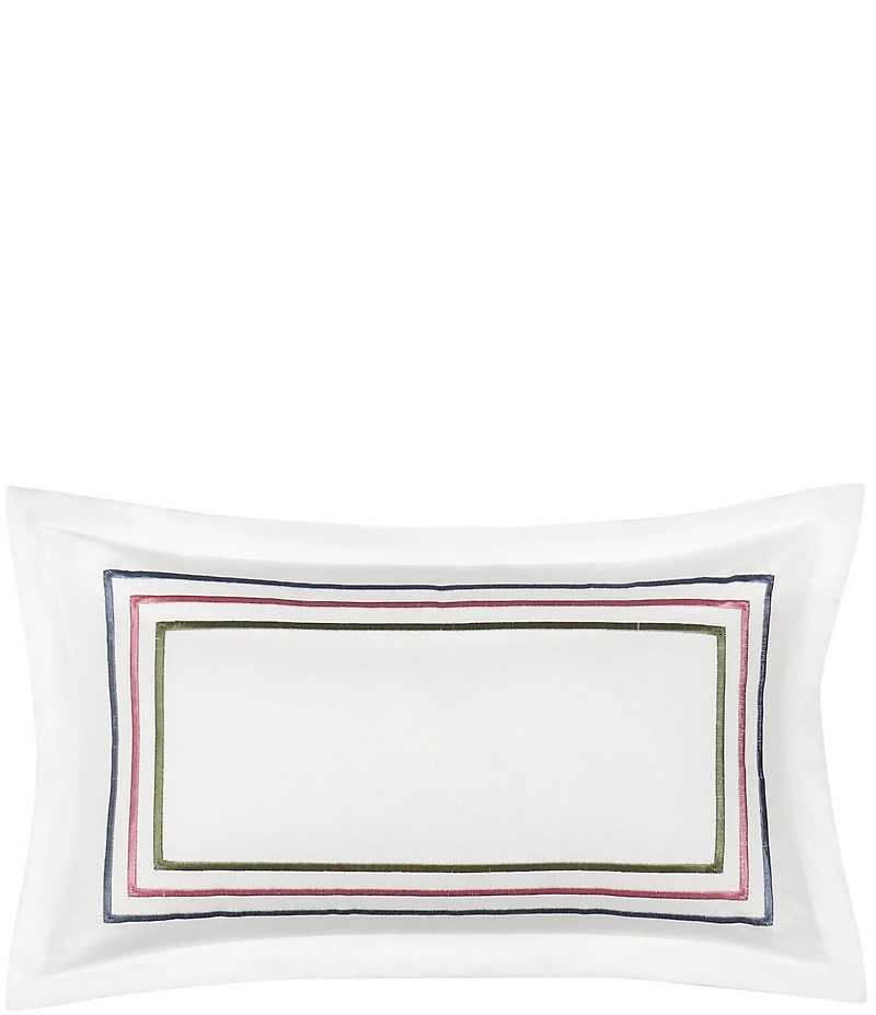 From the Savannah collection by Piper & Wright, this pillow features: An accent piece that blends a sleek border design with elegant charm An embroidered border in shades of pink, blue, and green with a flange trim Approx. 12" x 24" 100% cotton sateen Machine wash cold, and tumble dry Imported.