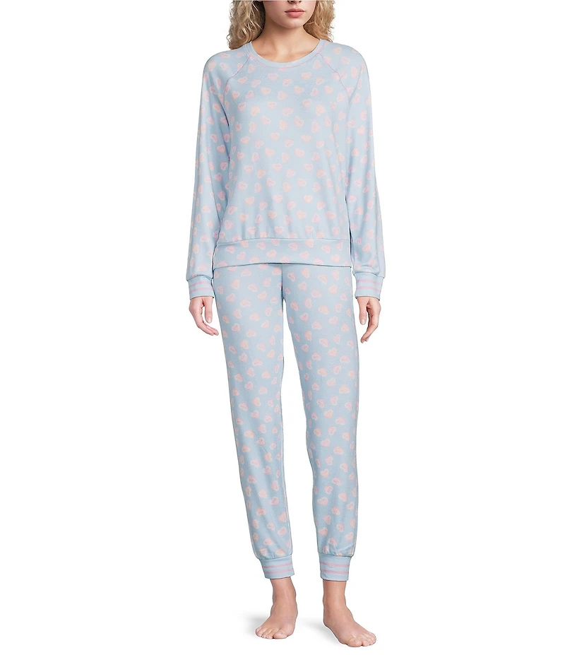 PJ Salvage Long Sleeve Crew Neck Heart Candy Print Long Peachy Knit Valentine's Day Pajama Set in Chattanooga, TN