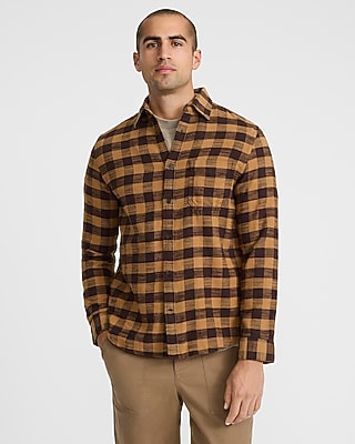 Cozy and soft, this check plaid brushed cotton flannel is complete with a point collar, long sleeves, and a patch check pocket.