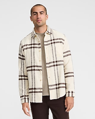 Comfortable and classic, this relaxed brushed cotton flannel shirt is complete with a bold plaid print, a button-down front, and a patch chest pocket