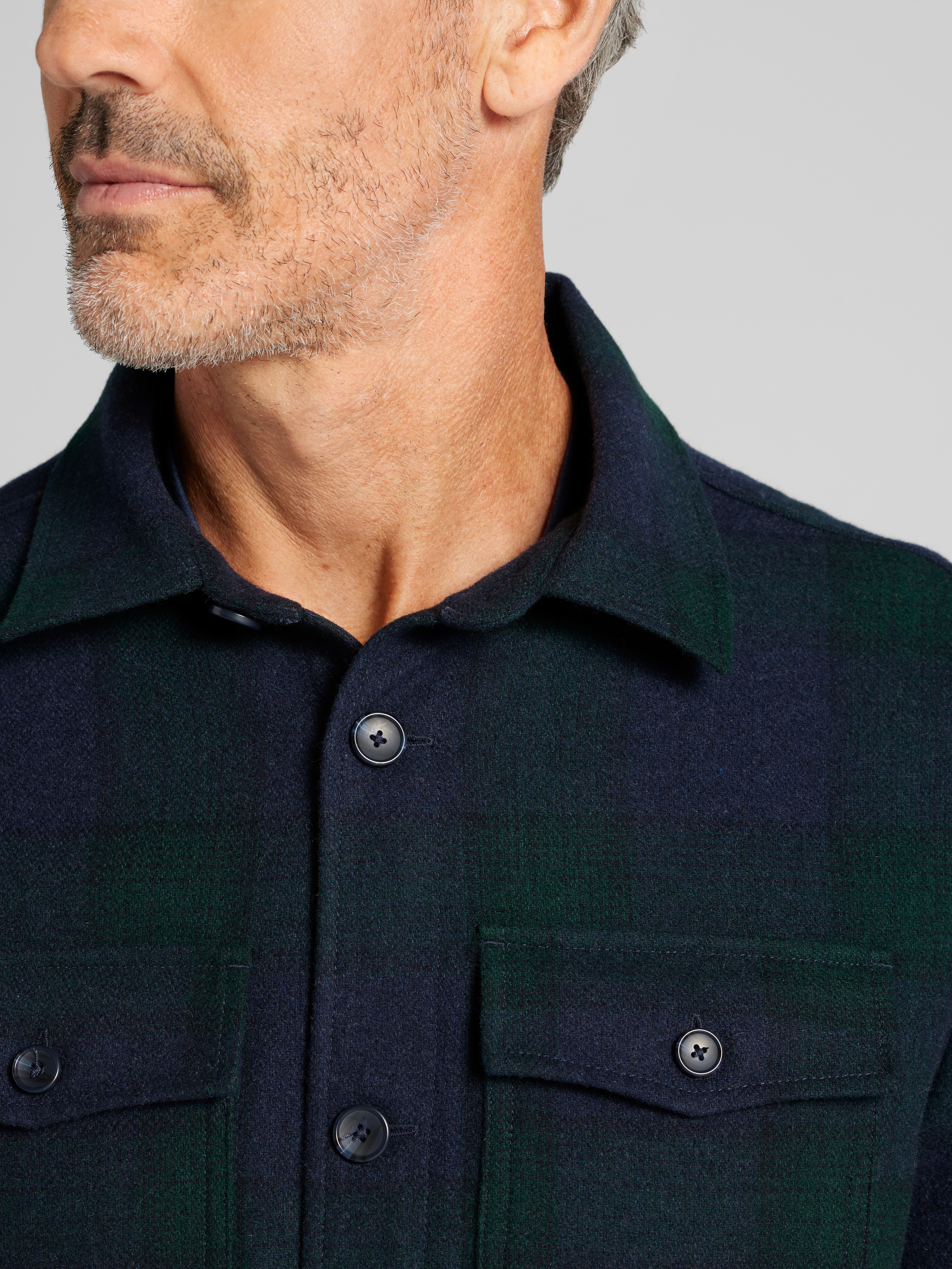 When the weather can't make up its mind, this Joseph Abboud flannel overshirt has you covered! It's the perfect mix of rugged and refined, made from a cozy wool blend with just enough stretch to keep you comfortable on the go. The classic plaid pattern and Modern Fit make it an easy go-to for layering over a tee or button-down, whether you're heading out for the day or just hanging out. It's basically the ultimate grab-and-go piece for those in-between days.