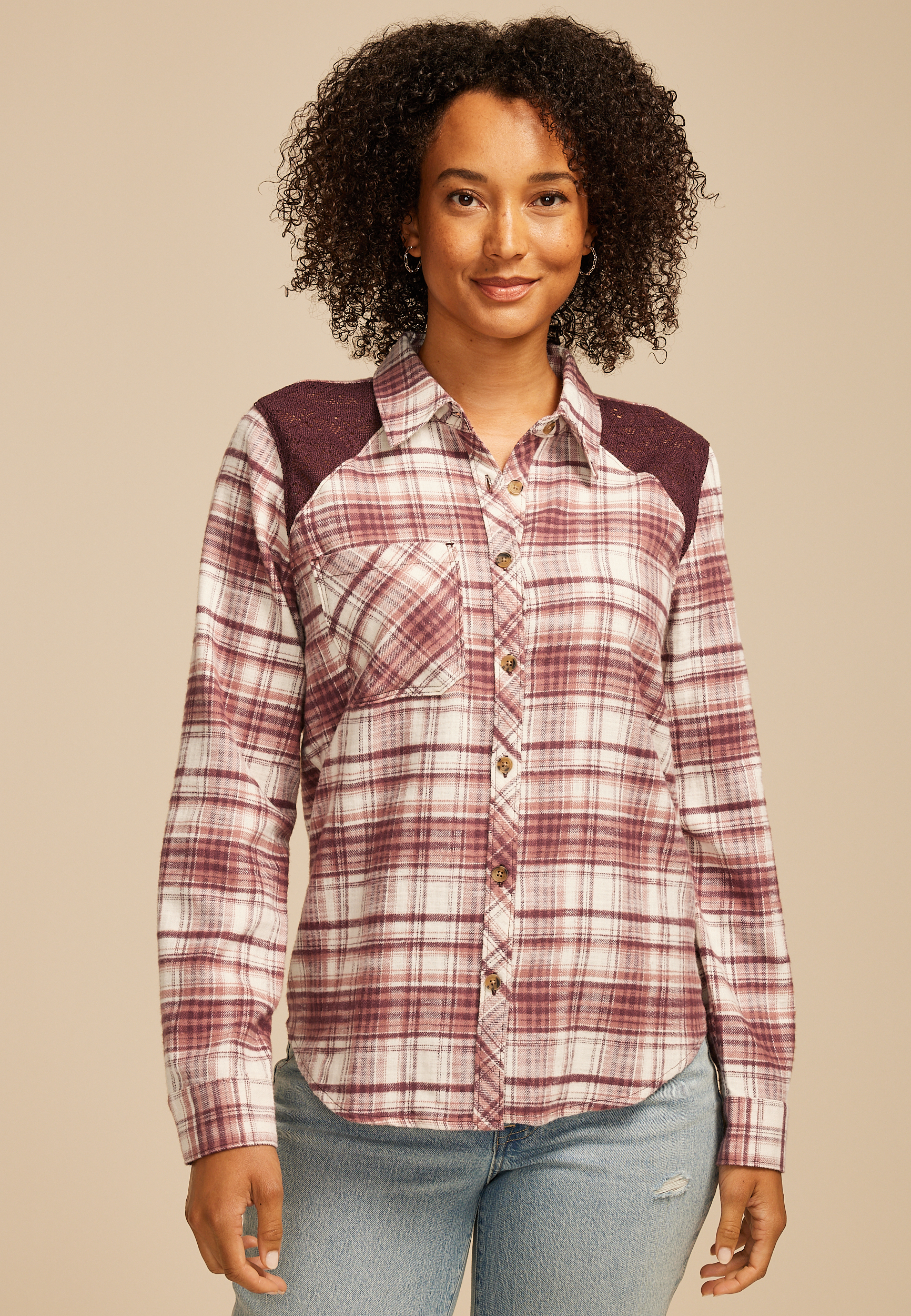 Plaid Lace Shoulder Button Down Shirt in Chattanooga, TN