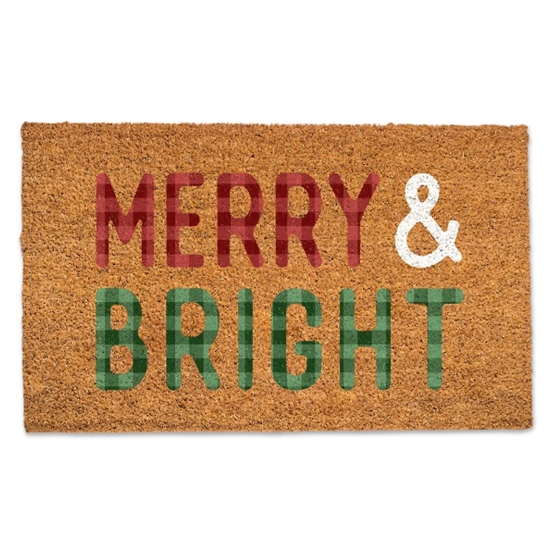 Add a cheerful touch to your entryway with this Plaid Merry & Bright Coir Doormat! Featuring bold red and green lettering with a checkered plaid design, this festive mat brings instant seasonal charm to your doorstep. Doormat measures 30L x 20W x 0.75H in. Crafted of coir with vinyl backing Natural coir background finish Features the phrase, "merry & bright" Plaid letter design Hues of red, green, and white Designed and printed in the USA Water and mildew resistant Care: Shake well periodically to prevent dirt buildup and maintain appearance. To maintain vivid colors, avoid direct exposure to sunlight. This item is available at Kirklands.com only, not available in stores. Please note: this item cannot be shipped to APO/FPO addresses.
