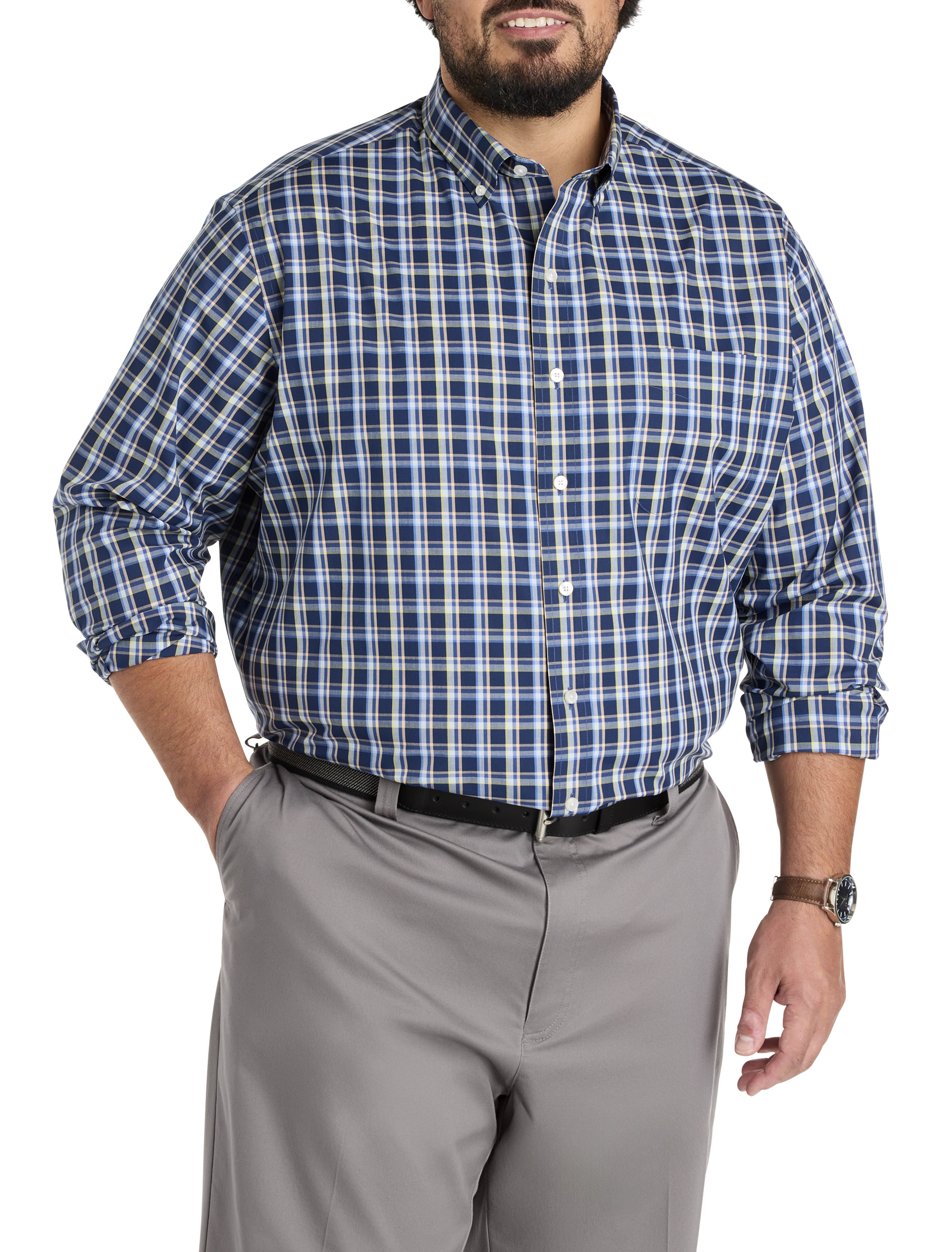 Comfort, versatility, built-in stretch for ease and a fresh-for-the-season plaid pattern, this Oak Hill sport shirt has it all. Oh, and did we mention that it wicks away moisture, too? Designed at DXL with precise proportions and an ideal fit for Big and Tall guys, it's expertly crafted with 37.5® Technology, an innovative, temperature-regulating fabric that works with your body's natural mechanisms to cool you down or help you stay warm based on your body's humidity level. Plus, it's also wrinkle resistant, making it the perfect choice for travel.